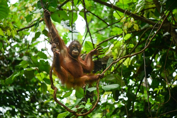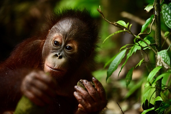 Food is a big motivator for Arto—he happily eats just about everything. One of Arto’s distinctive characteristics is his preference for natural foods. In the forest he tucks into jengkol, young leaves, bark, coffee cherries and figs and will defend his haul from his orangutan friends. He also loves enrichment like coconut and sugar cane. Arto’s vigorous appetite is supporting his growth and development well.
