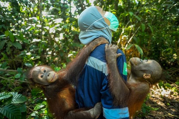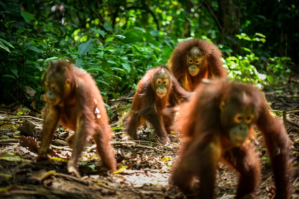 He weighs in at a healthy 9.1 kg. He’s growing more independent each week, feeding himself high in the trees and confidently exploring the forest on his own before coming down to the ground to play and wrestle with his friends.