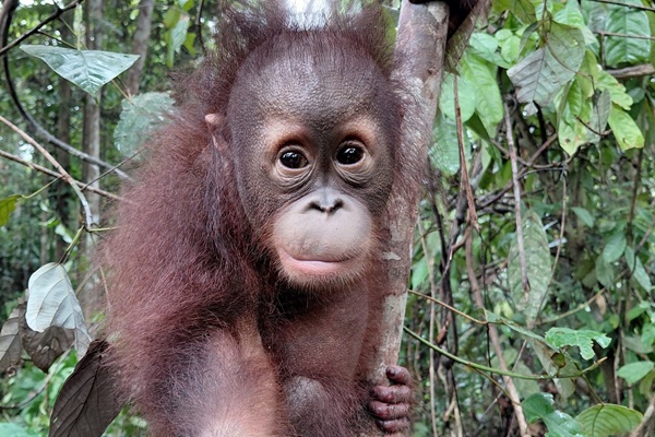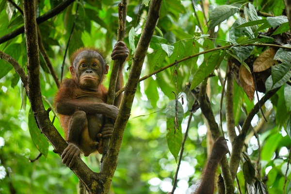 At just 18 months old, Felix is the youngest orangutan at Jungle School. His gentle, easily worried nature makes him especially endearing.