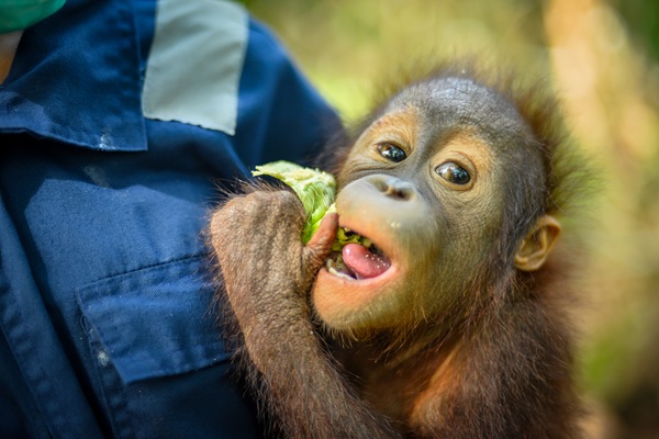 While he often plays alone or stays near his babysitter, he is slowly starting to engage with friends like Harapi, Pansy, Aman, and Ochre—taking small but important steps in his social journey. Felix also likes to observe the other orangutans from a distance. Being so very young, it is very normal for Felix to need the comfort and reassurance of his familiar babysitters- just as he would have that consistent love from his mum in the wild.