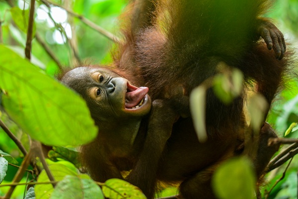 Harapi is naturally curious, often observing and imitating the orangutans around him. He enjoys investigating his surroundings and sometimes even engages in mischievous behaviours like tugging on a friend’s hair. His carers keep a close watch to ensure these curious antics don’t get him into too much trouble!